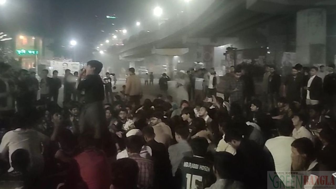ঢাকা পলিটেকনিকের শিক্ষার্থীরা মধ্যরাতে রাস্তা অবরোধ করেছে