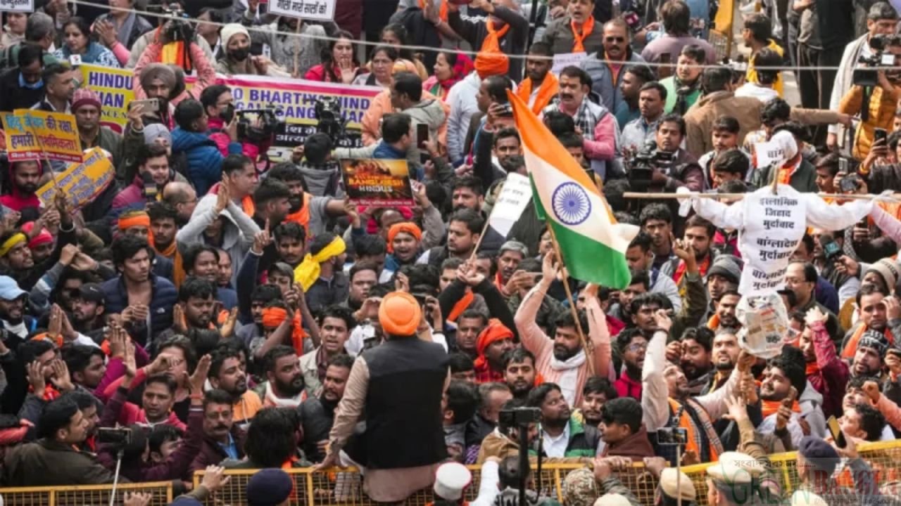ভারতের রাজধানী নয়াদিল্লিতে বাংলাদেশ হাইকমিশনের সামনে আবারও বিক্ষোভ করেছে হিন্দুত্ববাদী দল বিশ্ব হিন্দু পরিষদ (ভিএইচপি) এবং বজরঙ্গি দল। আজ মঙ্গলবার (২৩ ডিসেম্বর) বিক্ষোভ শুরু হওয়ার পর, হাইকমিশনের সামনে শতাধিক মানুষ জড়ো হন। তারা বাংলাদেশ বিরোধী স্লোগান দিয়ে পুলিশ ব্যারিকেড ভেঙে যাওয়ার চেষ্টা করেন।
