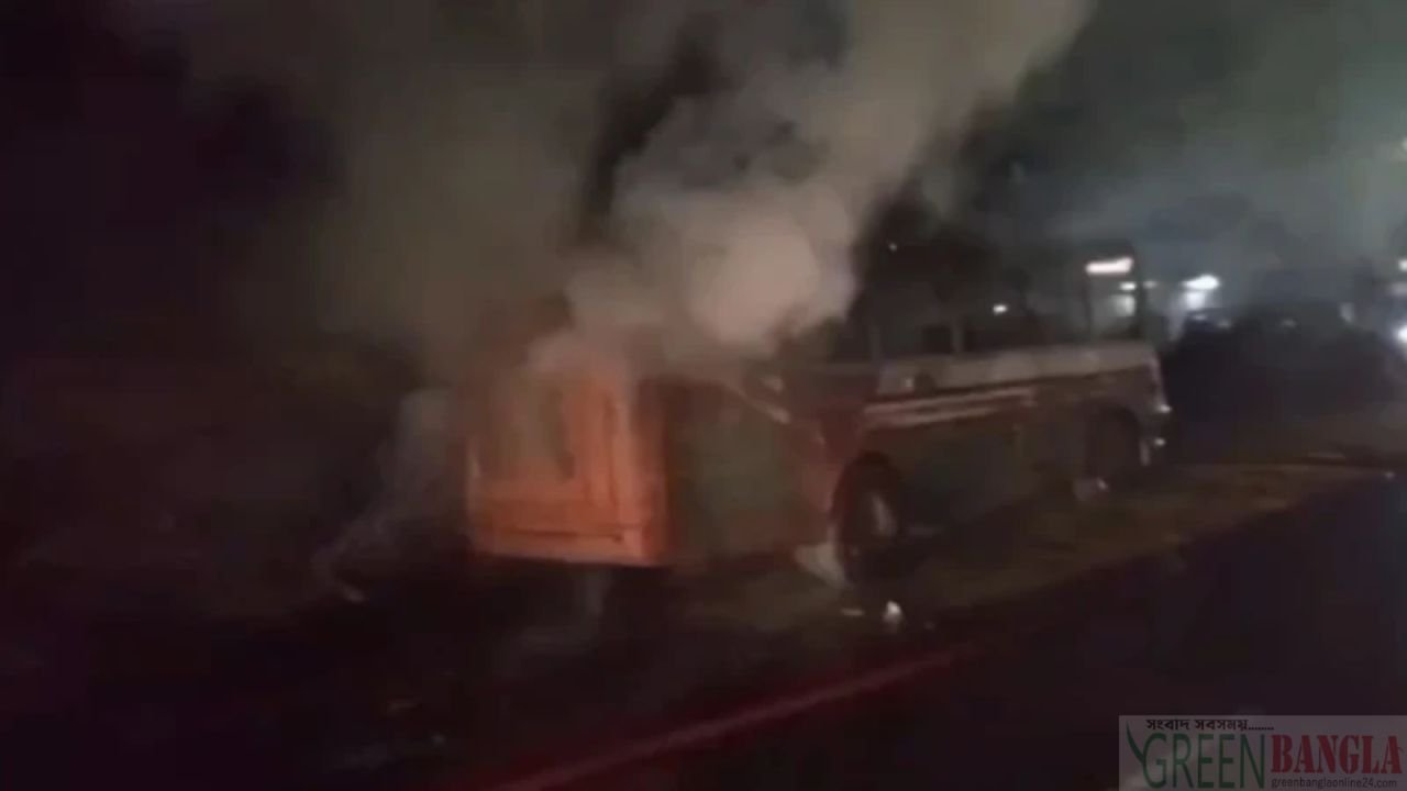 সাভারে বাসে আগুন