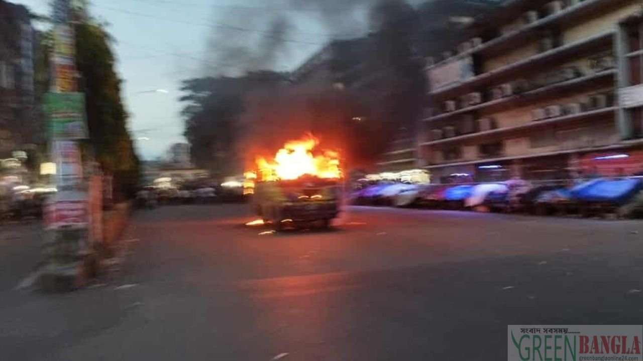Two people have been arrested in Chittagong in connection with a fire in a passenger bus. They were arrested in a raid conducted on Sunday (July 20) night. Meanwhile, a CCTV footage of the incident has been circulated on social media. In it, it can be seen that a miscreant suddenly threw something like a petrol bomb at the stopped bus and fled. Panic broke out when the bus caught fire. Police said that the incident took place on Sunday evening when the bus was leaving Chittagong University and dropping off passengers at New Market intersection. However, no one was injured as the passengers got off quickly. Police also said that the matter is being investigated.