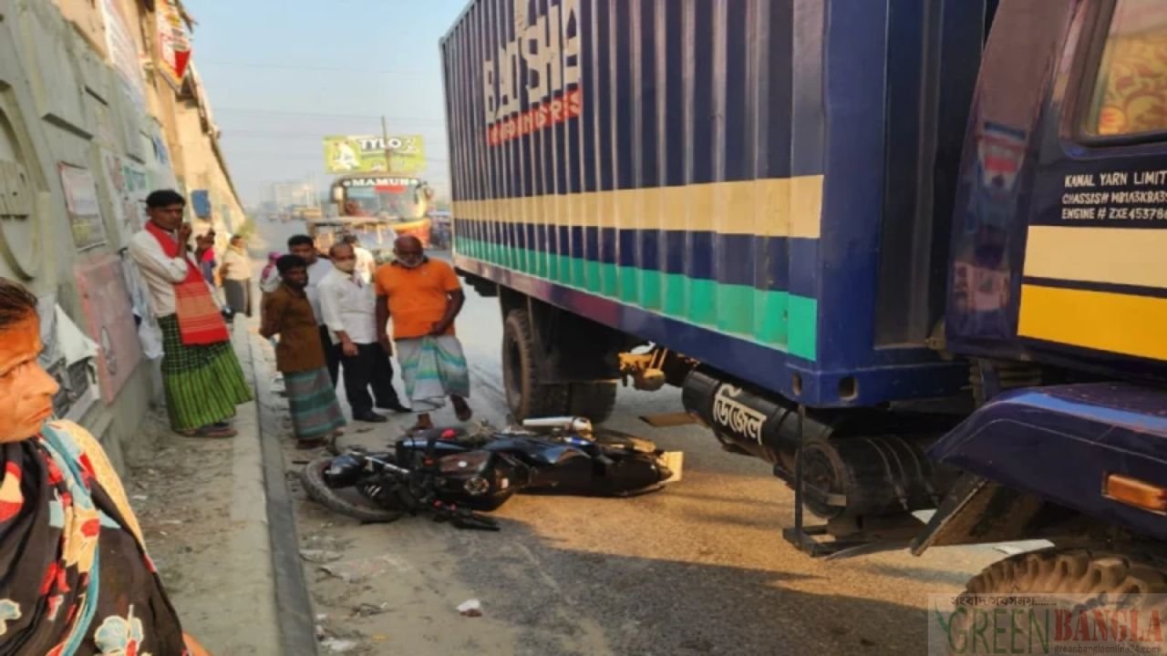 Locals said that an unidentified woman (24) among the two riders was thrown off when a covered van coming from Signboard towards Chashara hit a motorcycle traveling on the same road. At that time, the wheel of the covered van went over her right leg and her leg was severed below the knee. After the accident, local passers-by quickly rescued the injured woman and sent her to Pangu Hospital in Dhaka.