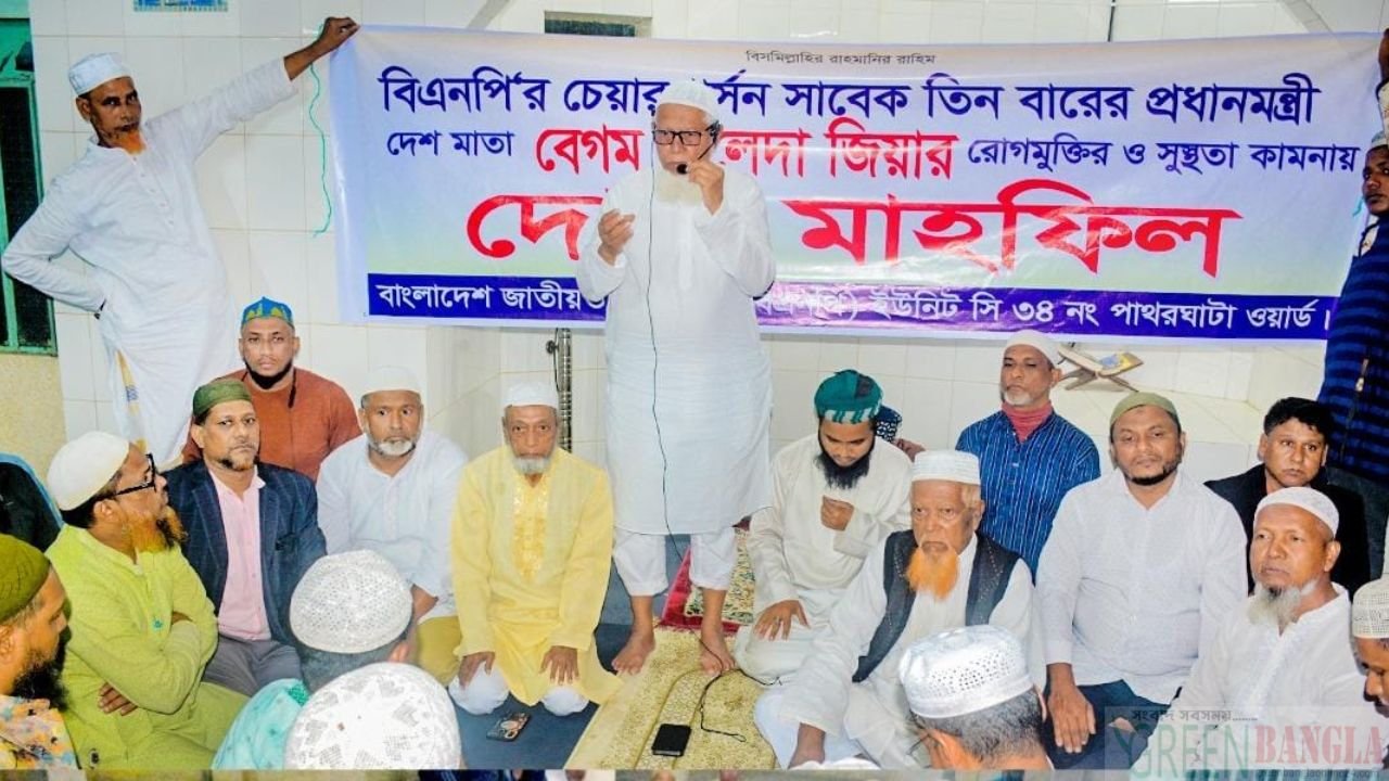 Yesterday, Wednesday (December 3, 2025), a different atmosphere of prayer mahfil was organized by the BNP at Patharghata “C” Unit No. 34 under the Kotwali Police Station of Chittagong-9 constituency to pray for the recovery of BNP Chairperson and former Prime Minister Begum Khaleda Zia. “She is not the leader of power, but the leader of the people” – the chief guest was Shamsul Alam.