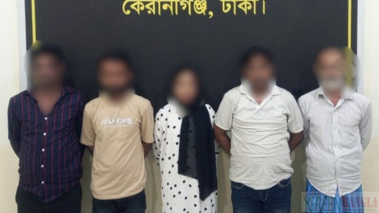 The arrested are Md. Alamgir Hossain alias Salauddin (50), Md. Sajeeb (27), Asha Akhter Jharna (20), Md. Apu Bepari alias Qurban (24) and Md. Khokon (56). Four of them are residents of Khezurbagh area of ​​South Keraniganj and the other is a resident of Panchgaon area of ​​Tongibari upazila of Munshiganj district. Three mobile phones were also seized from them during the operation.