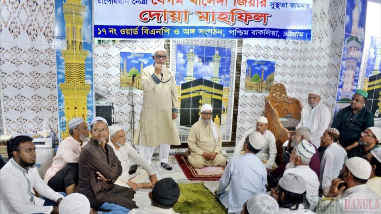Yesterday, Monday (December 1, 2025), a prayer mahfil was held at West Baklia Ward No. 17 under Baklia Police Station in Chittagong-9 constituency to pray for the health and longevity of BNP Chairperson and former Prime Minister Begum Khaleda Zia. A large number of leaders and activists of BNP, Jubo Dal and Chhatra Dal, including various organiza- tions, were present in this program organized by local leaders and activists.